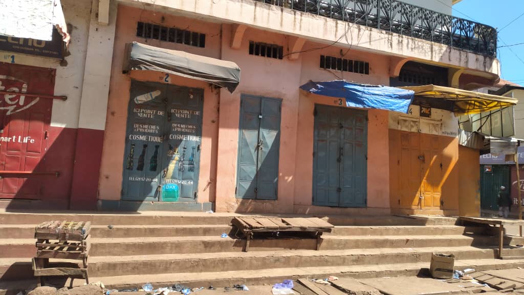 Partout dans le centre ville, les magasins et boutiques sont fermés. Tout tourne au ralenti. Certains commerçants sont assis devant leurs boutiques « pour les sécuriser « , dit-on.