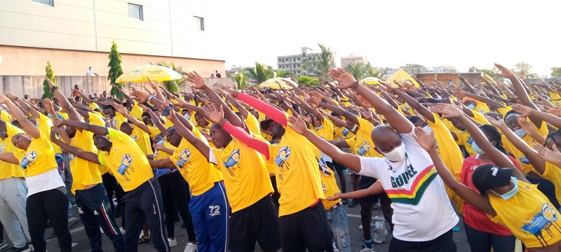 Samedi 04 décembre 2020, en banlieue de Conakry, dans la commune de Ratoma, des centaines de jeunes de tous les sexes et d’horizon différents, ont pris part à une séance d’exercices physique de masse. C’est une nouvelle édition de Conakry Fitness Tour, organisée par la structure Dial initiative visant à encourager les jeunes à communier autour du sport. Mohamed Kourouma, le coach de ce grand public sportif, après s’être réjouit, évoque l’importance de l’exercice. «Je suis très content de voir cette foule. Il y a beaucoup qui sont malades, y’en a qui sont sédentarités, des victimes d’obésité et de maladies cardio-vasculaires. C’est pour les aider à reprendre la forme. Cette séance qu’on a faite, moi je l’appelle de l’aérobic, c’est une activité qu’on fait avec la musique, pour les permettre de travailler. Pendant qu’ils sont en train de danser, cela les aide à bien travailler car c’est l’effort qu’ils fournissent, c’est différent de courir. Avec de la musique, pas de stress, pas de fatigue et il y a toujours la motivation qui est là», explique-t-il.