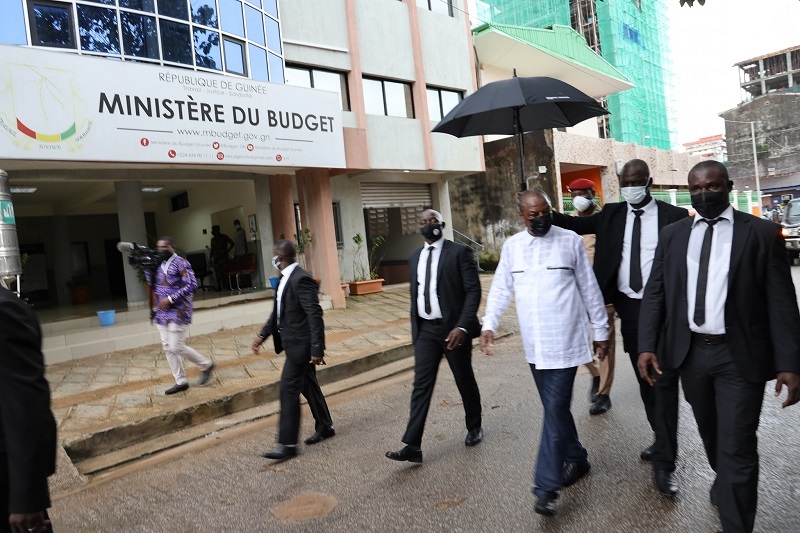 De retour de quelques semaines de vacances en Europe, le président Alpha Condé a effectué des visites inopinées dans la matinée de ce mardi, 31 août aux ministères du Budget, de l’Economie et des Finances ainsi que de l’Administration du Territoire et de la Décentralisation.