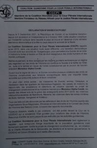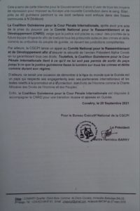 Les responsables de la Coalition Guinéenne de la Cour Pénale Internationale (CG-CPI) ont animé une conférence de presse ce lundi 20 septembre 2021 à Conakry pour parler de la transition qui s’annonce.