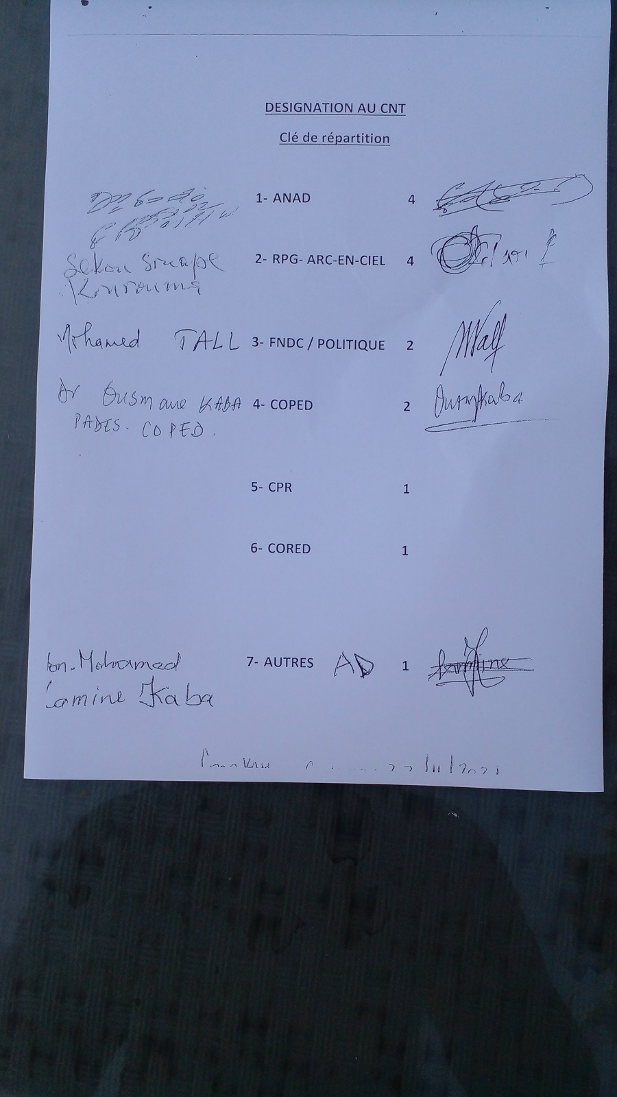 Les partis politiques réunis au sein des coalitions sont enfin parvenus à une modalité de répartition des 15 représentants accordés à la classe politique au sein du CNT comme suit: