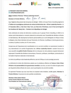 L’ancien Premier ministre est aussi invité aux États-Unis pour participer à la quatrième édition de la prestigieuse cérémonie de remise de distinction des « African Leadership Awards » sous le haut parrainage de Macky Sall, président du Sénégal.