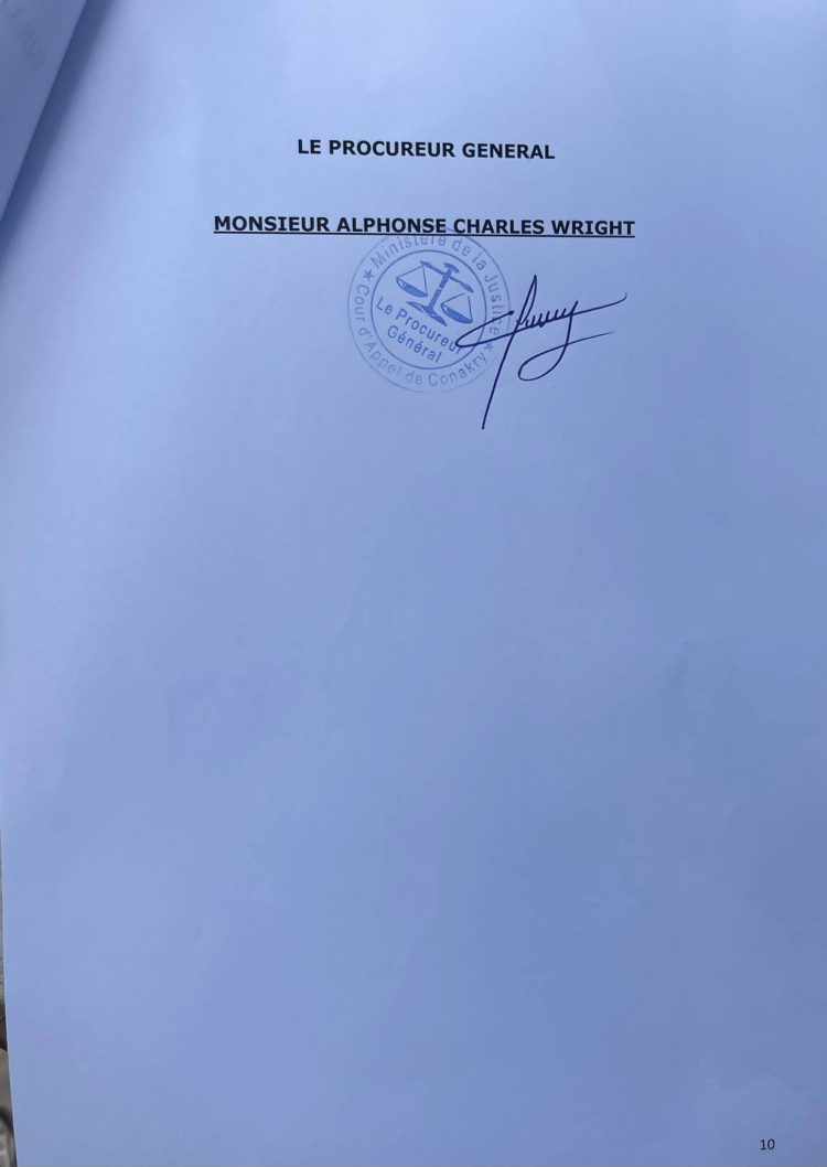 Après la communication officielle du procureur général près la cour d’appel de Conakry, Alphonse Charles Wright, sur de nombreuses affaires dont celle concernant le groupe Djoma de l’ancien proche d’Alpha Condé, Kabinè Sylla alias Bill Gates, suivie de la saisine du procureur spécial de la Cour de répression des infractions économiques (CRIEF) de la même affaire, une instruction a été ouverte avec à la clef plusieurs chefs d’accusations qui donne de l’insomnie. Dans une sortie lundi, les avocats du groupe Dioma de l’ancien intendant de la Présidence de la République, ont dénoncé ce qu’ils qualifient de vices de procédure en s’attaquant principalement à la communication médiatique du procureur général. Ce dernier, selon eux, a violé un principe de secret en étalant sur la place publique les numéros des comptes en banque des entreprises du groupe Dioma. Alphonse Charles Wright n’a pas attendu longtemps pour revenir à la charge. Ce mardi matin, le procureur général a rencontré la presse et rendu public un communiqué de dix pages (à lire ci-dessous) pour battre en brèche les arguments des avocats dont il qualifie les propos de « communication d’erronée et de détresse ». Non seulement il explique toute la procédure concernant cette affaire et essaie de relever qu’aucun vice n’a existé, mais il mentionné rappelle également les chefs d’accusation qu’il dit maintenir.