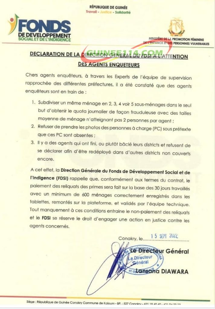 Fonds de développement social et de l’indigence : important communiqué de la direction
