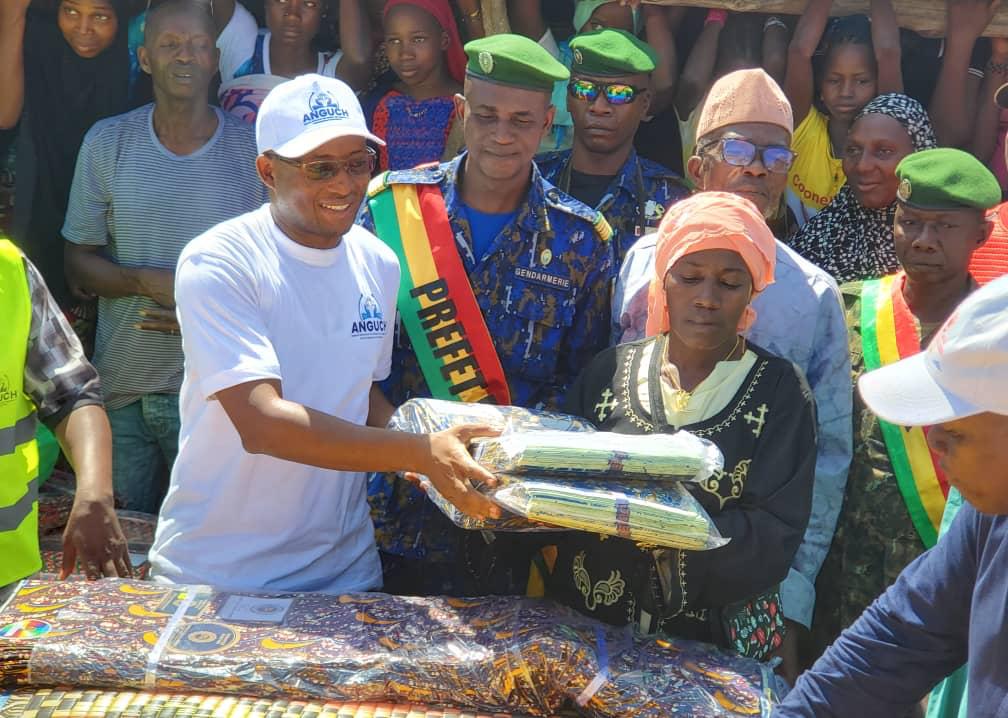 En réponse, une équipe de l’Agence Nationale de Gestion des Urgences et Catastrophes Humanitaires (ANGUCH) en compagnie du Préfet de Boffa, s’est rendue ce samedi 28 janvier 2023 dans ce village, pour apporter une aide en vivres et non vivres composés comme suit : 60 sacs de riz ; 30 sacs de farines ; 30 sacs de sucres ; 60 seaux ; 60 bols ; 60 nattes ; 120 complets de pagnes ; 60 nattes de prière et 60 bidons d’huile de 10 litres.