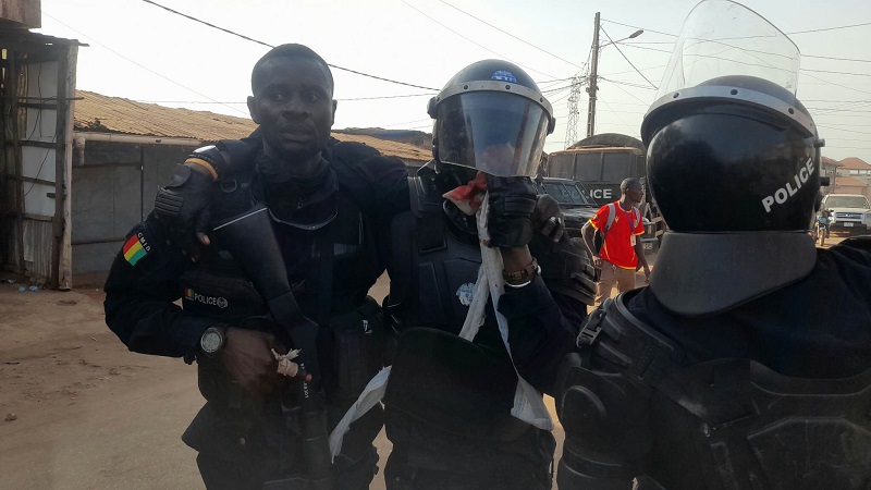 À Cosa-rails sur la transversale qui mène à Petit Simbaya c’est une vraie guérilla entre les forces de l’ordre et ces jeunes qu’il y a eu lieu. Cinq (5) policiers ont été blessés par des projectiles et plusieurs arrestations dans les rangs des jeunes. Un important dispositif sécuritaire composé des policiers dirigés par le patron des CMIS commandant Dioubaté et des gendarmes a été déployé sur ce lieu.