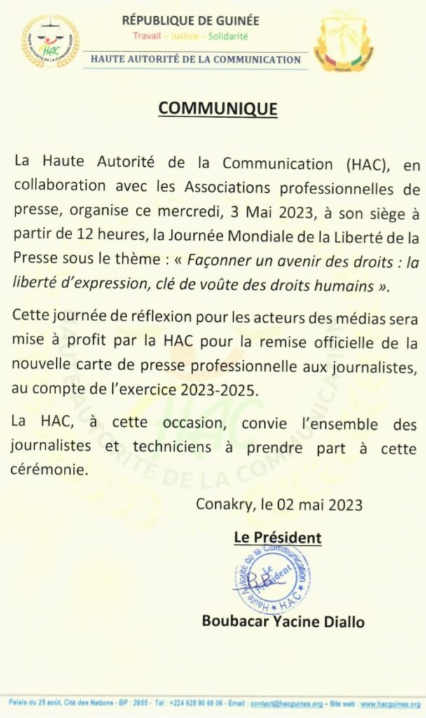 Communiqué de la HAC sur la célébration de la journée mondiale de la liberté de la presse
