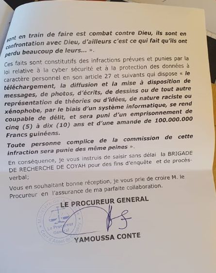 Guinee114 vous propose ci-dessous le courrier du parquet général de Conakry :