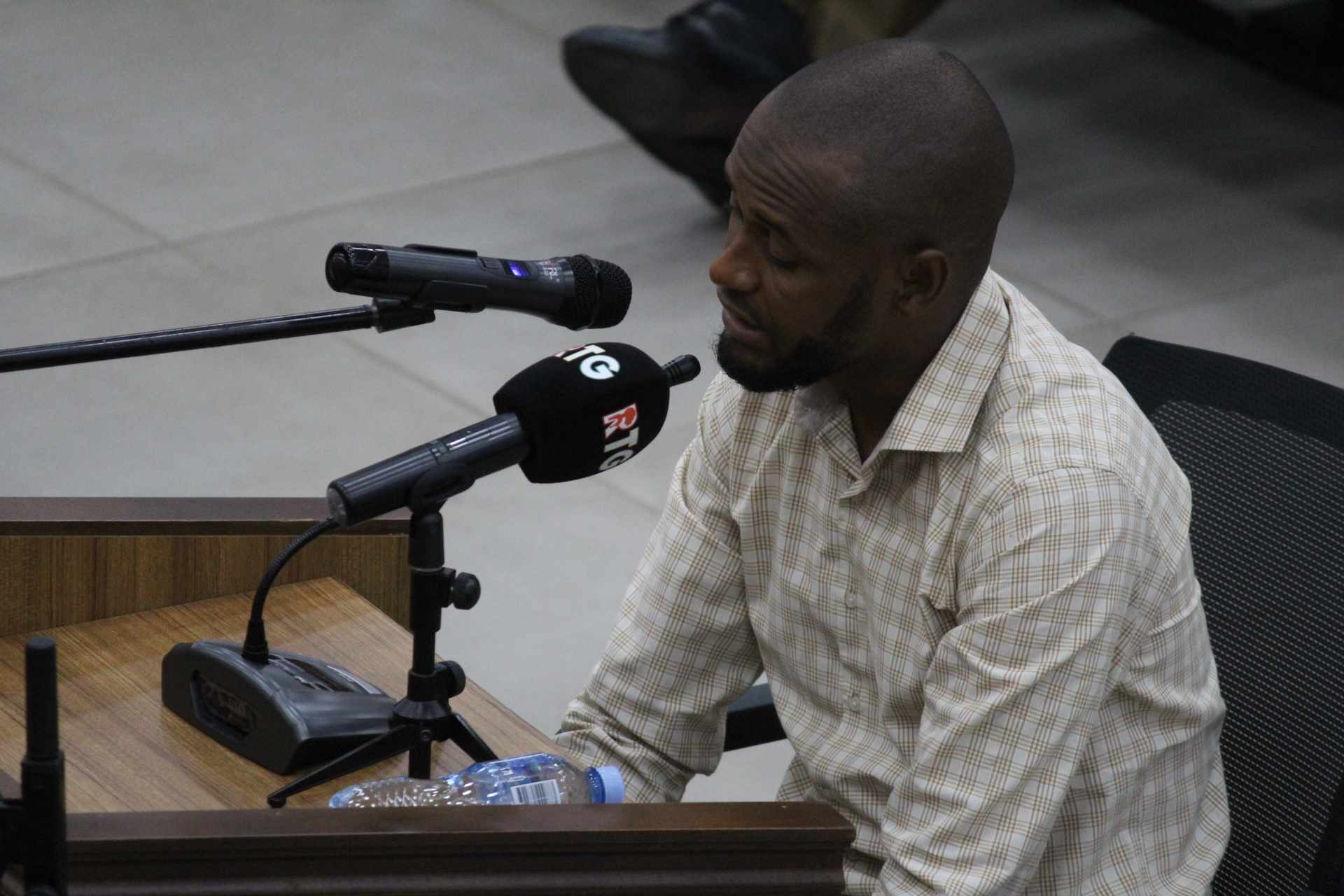 On me demande pourquoi tu es parti au stade ? J’ai dit c’était pour un reportage. On m’a demandé où sont tes matériels ? J’ai eu l’intelligence de dire que les bérets rouges ont saisi ça (…). Ils m’ont mis dans une salle où il y avait 3 personnes accusées de trafic de drogue. Cette cellule était climatisée. Mais les 54 autres personnes ont été enfermées dans une même cellule. J’ai vu des gens saigner par l’anus. Parce que j’ai eu la chance, j’étais maintenant un peu libre de mes mouvements. Parce que je pouvais sortir de la cellule et venir au salon.