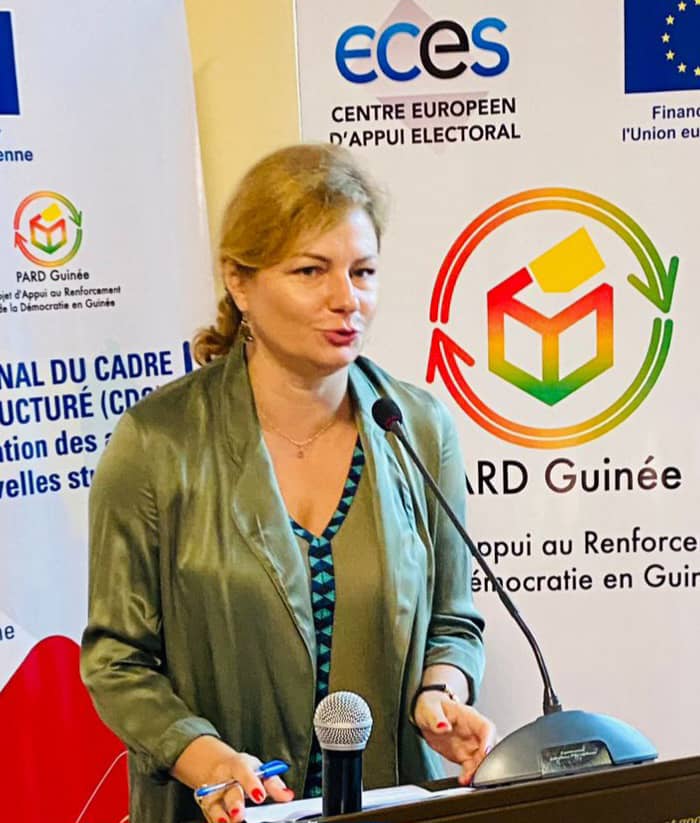 « L’Union européenne est aux côtés de la société civile pour l’accompagner tout au long du processus de transition en Guinée, où son rôle reste fondamental. Je vous encourage à poursuivre votre forte implication, en mobilisant vos capacités d’analyse, de compréhension et d’écoute, de négociations et de compromis démocratiques pour faire avancer l’agenda démocratique pour une transition réussie en Guinée. La recherche d’une démocratie née de la participation des citoyens à la prise des décisions, de la transparence du processus pour arriver à ces décisions, de l’intégrité de la mise en œuvre de ces mêmes décisions et de la capacité des citoyens à identifier et dénoncer les abus.