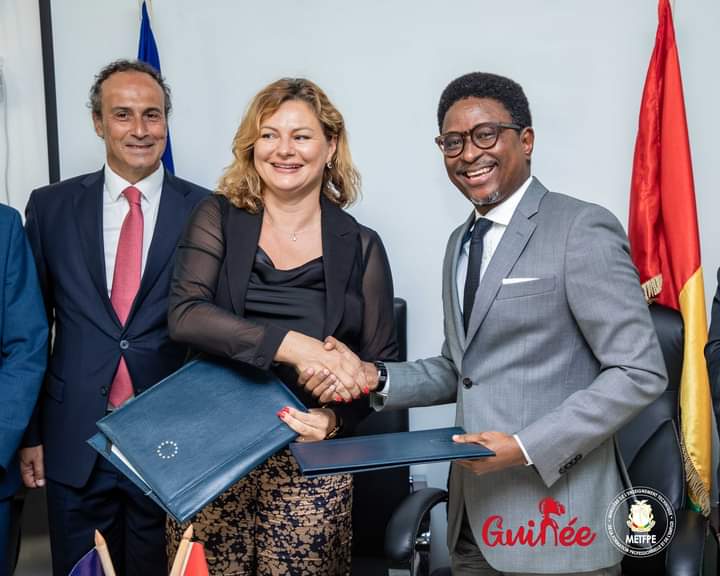 Le Ministère de l’Enseignement technique, de la formation professionnelle et de l’emploi a signé une lettre d’entente avec l’Union européenne pour le financement du Projet d’appui à l’insertion professionnelle et à l’emploi décent par la formation professionnelle (PAIED/FP). La cérémonie de signature a eu lieu ce mardi, 28 novembre 2023, entre le ministre Alpha Bacar Barry et l’ambassadrice de l’UE en Guinée. Elle permettra au METFPE d’avoir un montant de 26,5 millions d’euros, permettant de poursuivre la mise en œuvre du PAIED/FP pour le bonheur des jeunes guinéens.