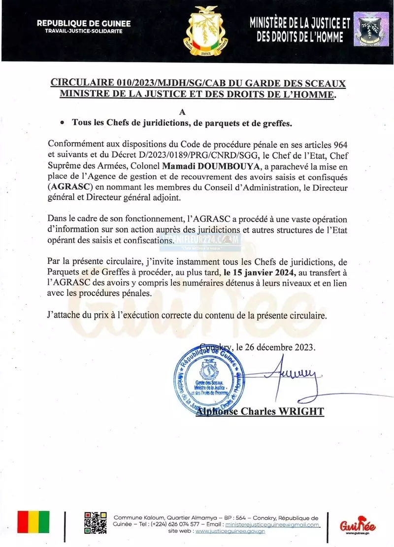 Passation à l’AGRASC : Alpha Seny Camara dénonce la réticence de certaines juridictions à appliquer la loi « Un magistrat qui ne respecte pas la loi, c’est un médecin qui tue » 24 octobre 2025