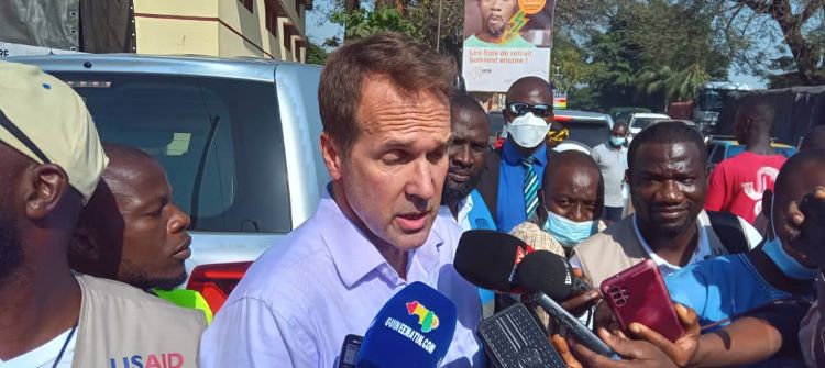 « C’est un honneur d’être ici. Je dois remercier l’Agence nationale de gestion de crises ainsi que notre partenaire, la Croix-Rouge, parce que nous sommes ensemble. Le peuple guinéen et le peuple américain, quand il y a la crise dans le monde, nous sommes ensemble. L’assistance ici, composée d’aliments, de l’eau, de médecins, c’est la réponse à une crise humanitaire. Aux États-Unis, nous avons un bureau d’assistance humanitaire pour les crises. Nous avons eu une conversation avec ce bureau pour voir comment on peut vous aider. Et la réponse était d’aider la Croix-Rouge. Nous sommes ensemble avec le gouvernement guinéen, la Croix-Rouge, le peuple guinéen et plus particulièrement les citoyens de Kaloum pour cette épreuve », a déclaré Troy Fitrell, qui a visité le dépôt d’hydrocarbures, avant de faire un tour chez certaines victimes.