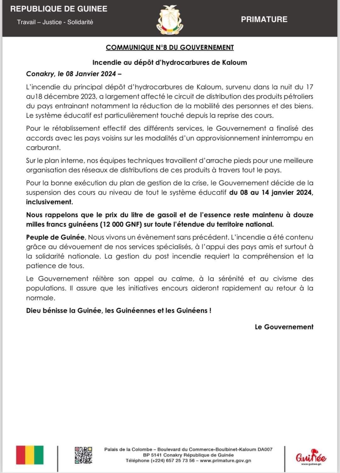 Éducation: suspension des cours jusqu’au 14 janvier (Communiqué)