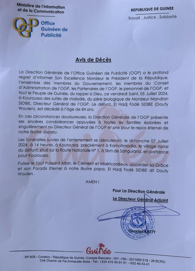 L’OGP et son DG en deuil: Mandian Sidibé a perdu son père (Communiqué)
