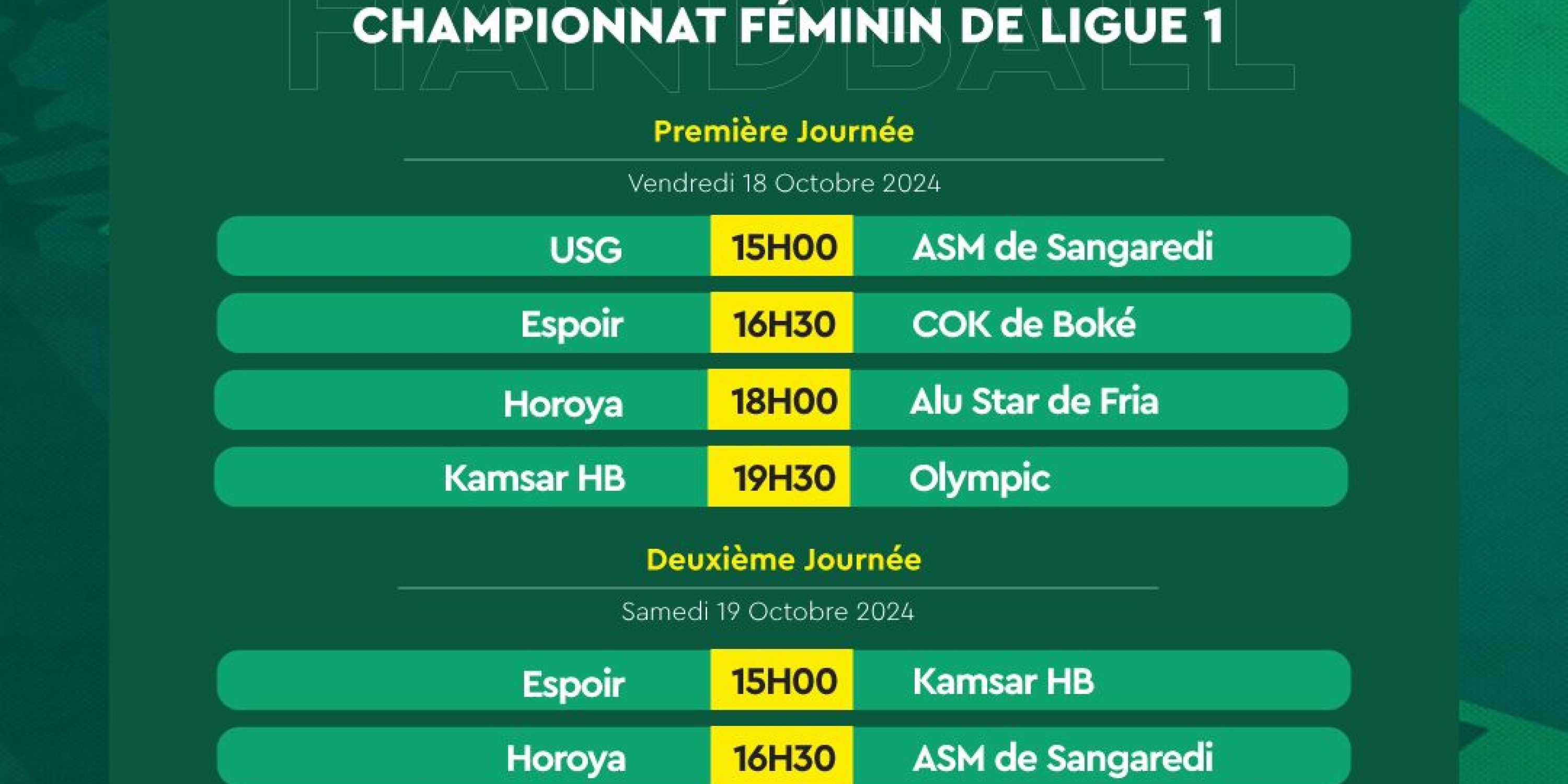 Le Championnat Féminin de Ligue 1 de Handball s’apprête à débuter, promettant des moments de compétition palpitants et de spectacle. La première journée se tiendra le vendredi 18 Octobre 2024 au gymnase du stade du 28 Septembre à Conakry, un lieu emblématique qui accueillera les meilleures équipes féminines du pays.