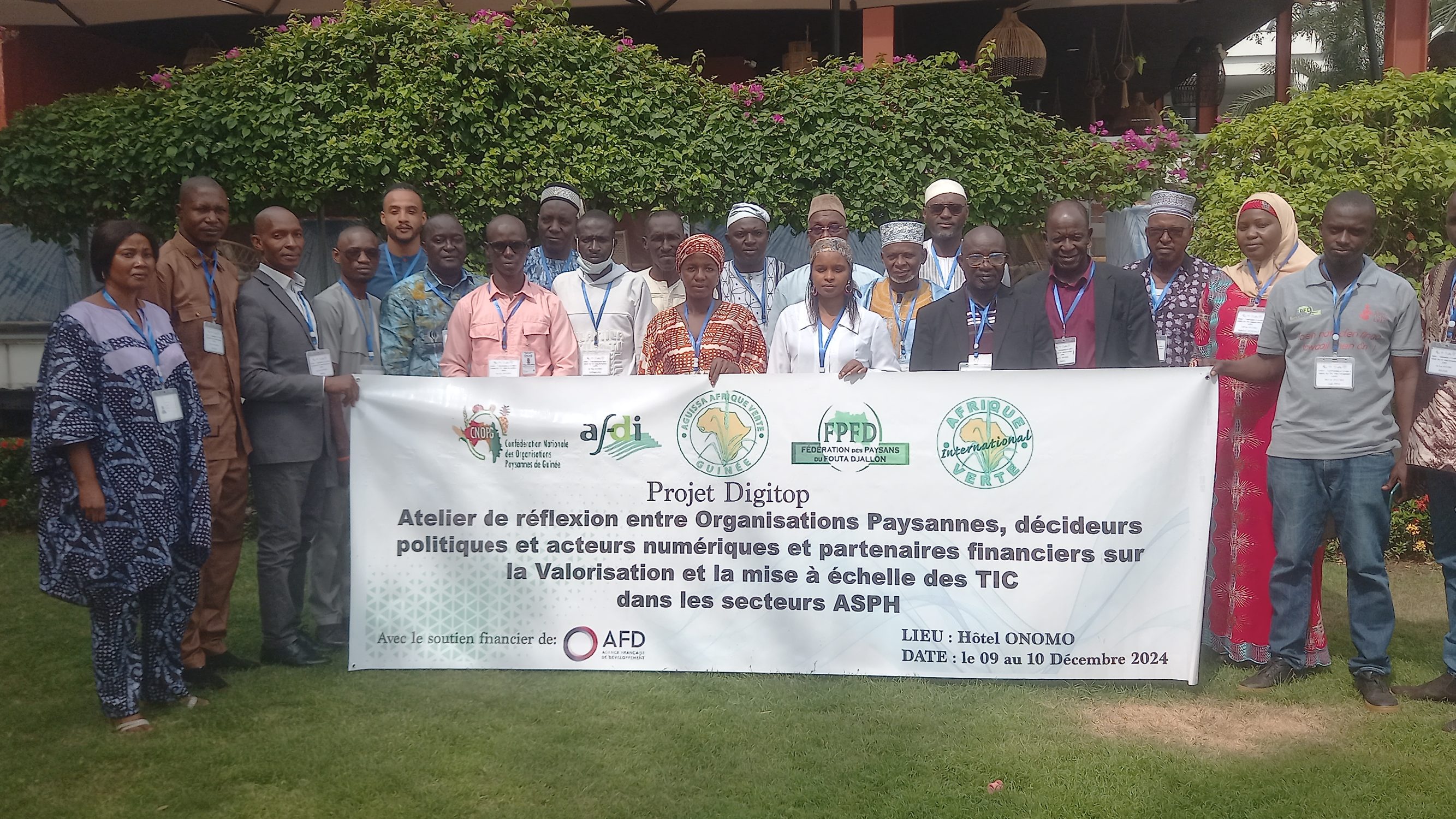 Dans le cadre de la mise en œuvre du projet digitop en intitulé « Le numérique, levier pour accélérer le développement des services des organisations paysannes d’Afrique de l’Ouest », la Confédération Nationale des Organisations Paysannes de Guinée (CNOP-G), en collaboration avec la Fédération des Paysans du Fouta Djallon (FPFD) et les ONG AGUISSA, AVI et Afdi, organise un atelier de réflexion collective sur le thème : « Valorisation et mise à échelle des TIC dans les politiques ASPH en Guinée ». Cet atelier a pour objectifs de mobiliser les décideurs politiques et autres acteurs institutionnels intervenant dans le domaine du numérique à se concerter pour les actions à entreprendre afin de valoriser, accélérer le développement et l’utilisation du numérique dans le secteur agricole national. Mais aussi, établir des liens mutuellement bénéfiques pour impulser un partenariat innovant pouvant contribuer à l’intégration de solutions numériques essentielles pour la modernisation et la croissance des filières agro-sylvo-pastorales et halieutiques. Les résultats attendus de cet atelier sont de plusieurs ordres parmi lesquels on note : Les programmes et projets numériques publics et privés actuellement mis en œuvre ou envisagés et pouvant impacter le secteur agricole, sont connus des OP, concepteurs de solutions agritech, IMF, banques ; Les solutions agritech qui ont fait leurs preuves en Guinée sont connus des OP, concepteurs de solutions numériques, Institution des Microfinance, banques ; Les défis des OP et des concepteurs de solutions agritech sont connus des acteurs publics et privés engagés dans les secteurs ASPH ; Les rôles des OP dans le développement de l’écosystème numérique pour l’agriculture sont connus et renforcés ;Les relations professionnelles entre les OP, les décideurs politiques en charge des secteurs numérique et ASPH, les concepteurs de solutions agritech, et les partenaires techniques et financiers sont renforcées ; Des synergies de collaboration entre les différents types d’acteurs présents sont identifiées et Le positionnement de la CNOP-G dans au moins une initiative/politique publique autour du développement du numérique dans le secteur agricole du pays.