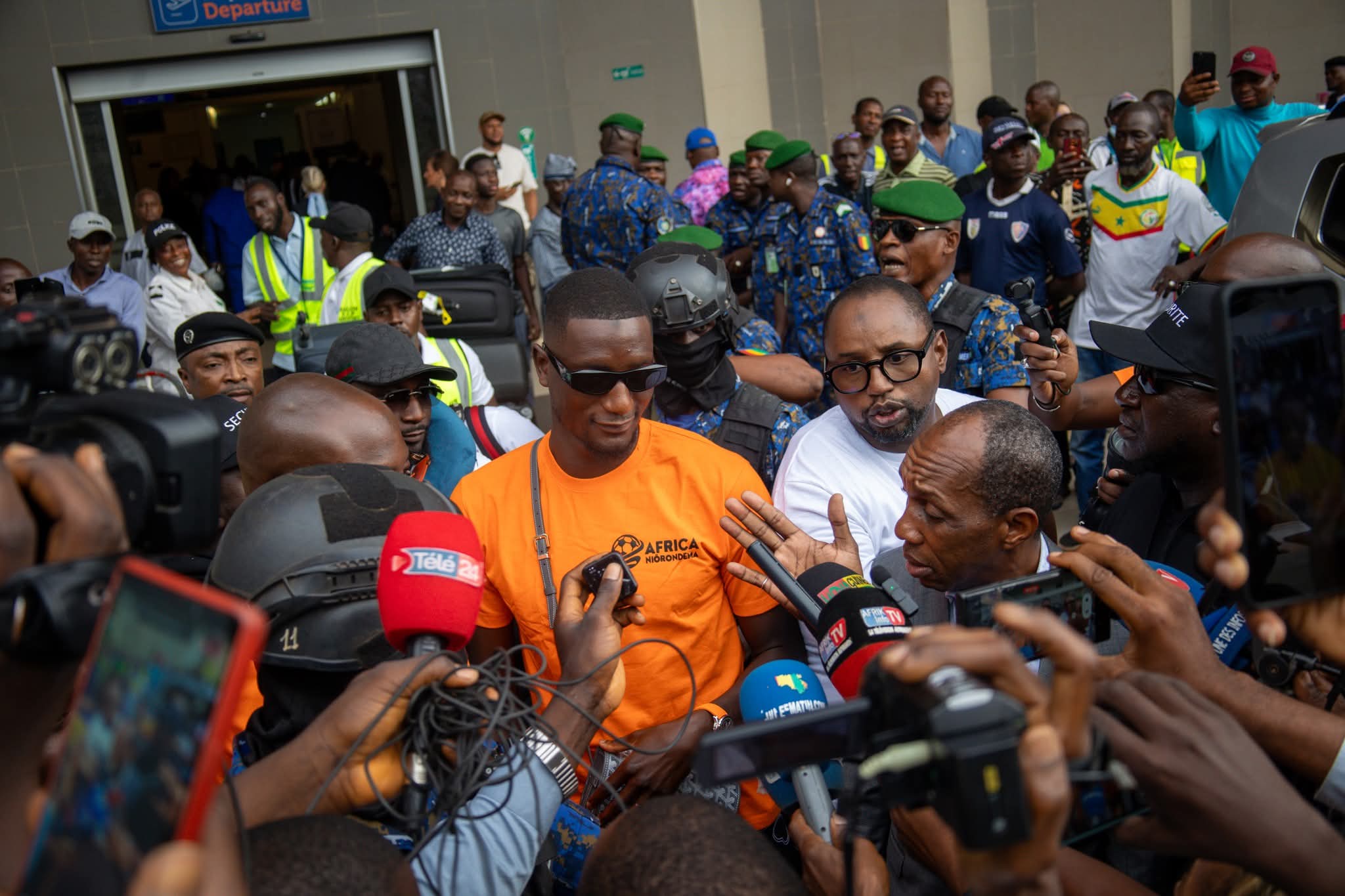 Le joueur vedette du Syli National, tout sourire à sa descente d’avion, a accordé un bref échange aux journalistes présents. Dans un ton humble, Serhou Guirassy a clarifié les raisons de sa présence dans son pays natal. « Je suis au pays. Je suis venu me ressourcer, ce qui est tout à fait normal. Je suis venu avec toute mon équipe pour lancer mon association Africa Niorondema. Vous recevrez le programme au fur et à mesure », a-t-il annoncé.