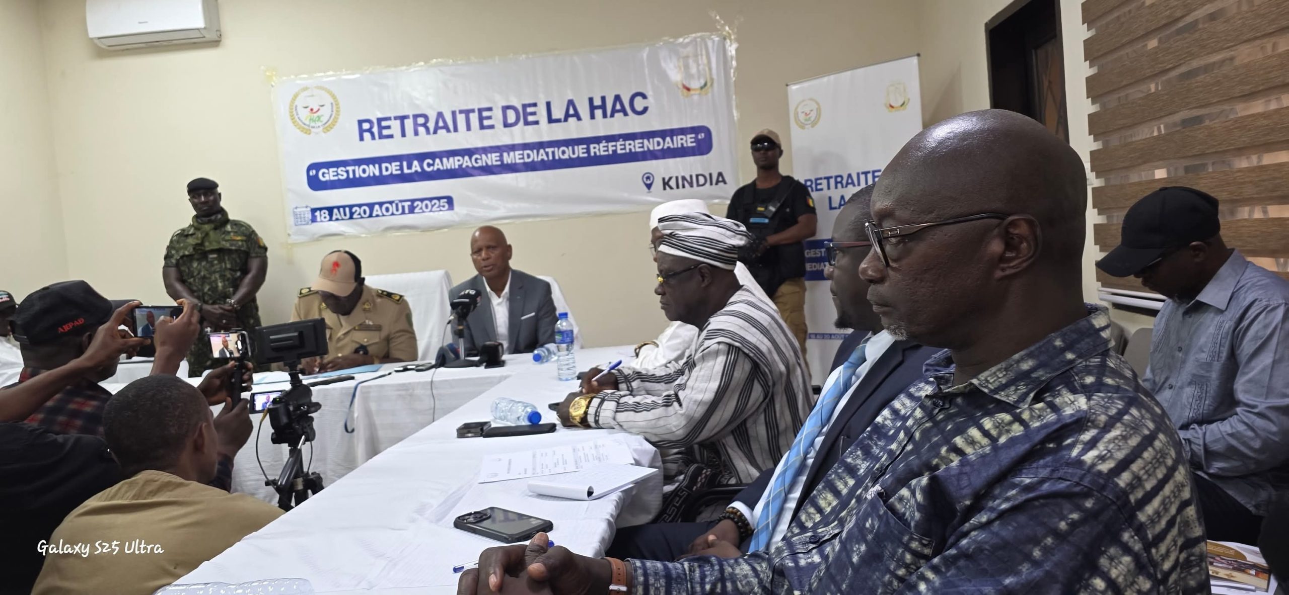 Référendum du 21 septembre : La HAC en retraite à Kindia sur la gestion de la campagne médiatique référendaireDans sa communication, Boubacar Yacine Diallo a rappelé les enjeux liés à la couverture médiatique d’un processus référendaire et a insisté sur la nécessité d’un traitement équilibré et professionnel de l’information par les médias. « Lancement de la Retraite de la Haute Autorité de la Communication sur La gestion de la campagne médiatique référendaire, du 18 au 21 août 2025 à Kindia », a indiqué l’institution